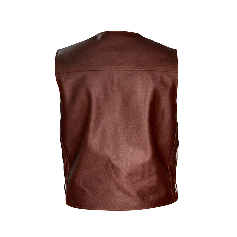 Men's Brown Leather 10 Pockets Motorcycle Biker Vest