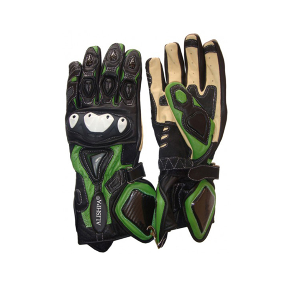 • Green Motorcycle Rider Leather Gloves