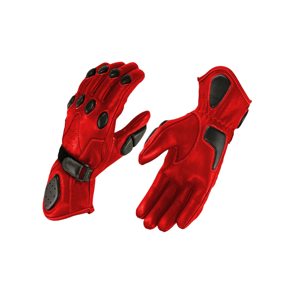 Dead Poll Red Motorcycle gloves made of quality 0.8mm Top Grain Cow Hide Leather. This leather is thicker compared to what is used in most cow hide gloves.