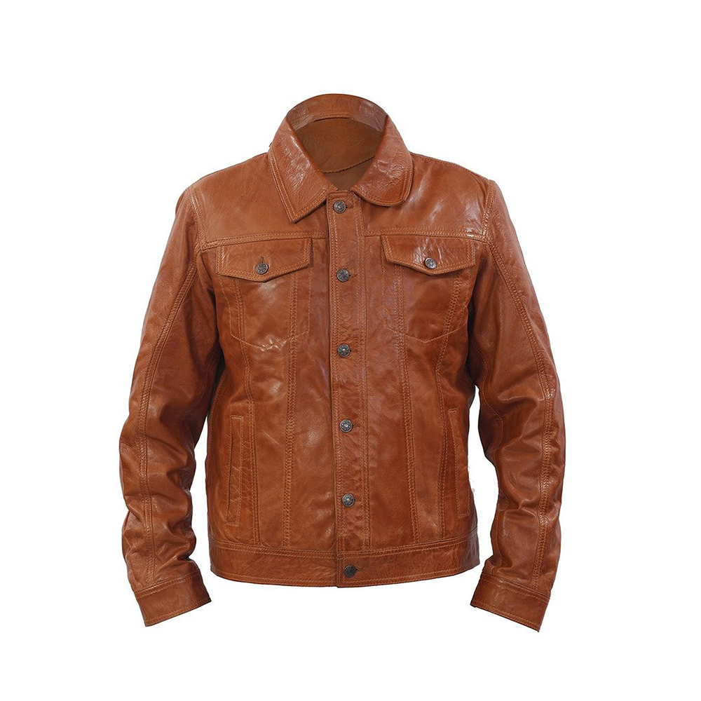 AI-7861800Slim Fit Casual Tan Leather Shirt